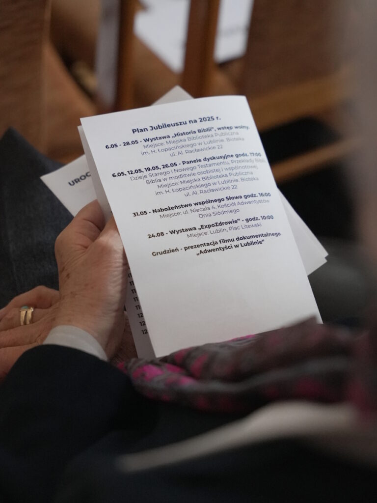 W sobotę, 26 kwietnia, przy ulicy Niecałej 4 w Lublinie, społeczność Kościoła Adwentystów Dnia Siódmego świętowała niezwykły jubileusz – 110-lecie swojego istnienia w mieście. Bycie częścią tego zgromadzenia stanowiło zaszczyt dla wielu. Było to wydarzenie pełne radości, wdzięczności i głębokiej refleksji nad historią, teraźniejszością i przyszłością zboru. Atmosfera uroczystego nabożeństwa przepełniona była ciepłem rodzinnej wspólnoty, a hasłem przewodnim całego dnia stały się słowa: „Wierny jest Ten, który was powołuje, On też tego dokona” (1 Tes 5,24).