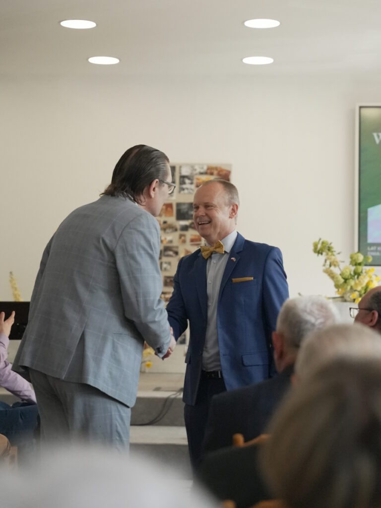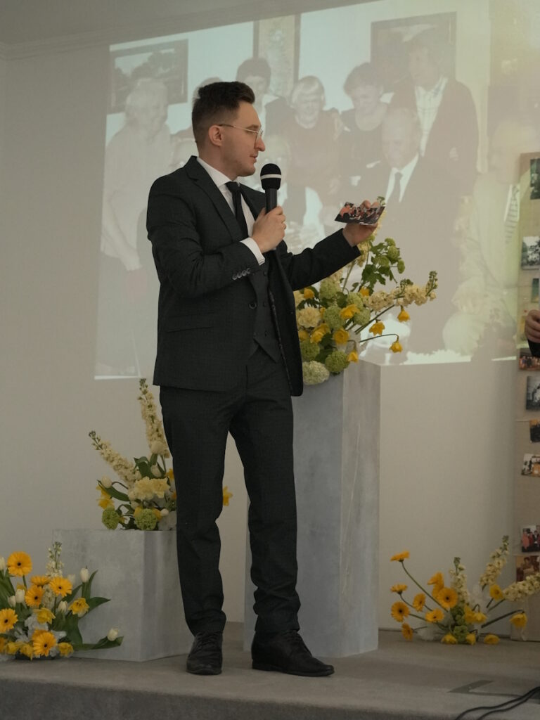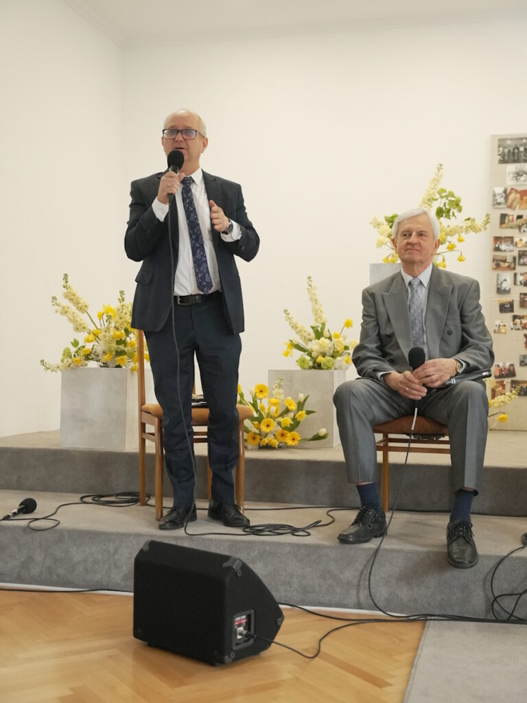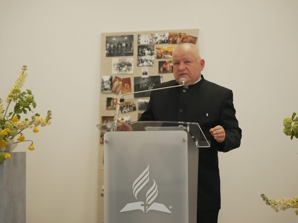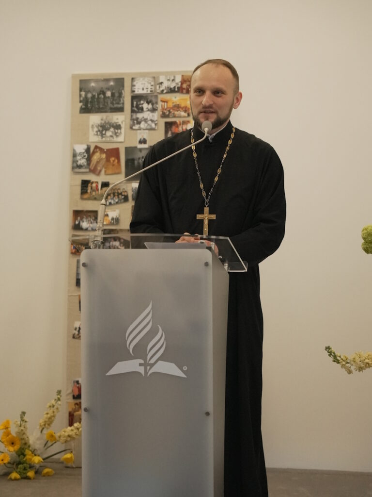 Kolejno ks. dr Andrzej Konachowicz, reprezentujący Kościół Prawosławny, przekazał zborowi bratnie pozdrowienia, życząc umocnienia w wierze oraz obfitych owoców Ducha Świętego dla całej wspólnoty. Duchowny wspomniał o swoich długoletnich związkach z Kościołem Adwentystów, które sięgają czasów jego pochodzenia z Wrocławia, gdzie istnieje duża wspólnota adwentystyczna, która otrzymała miejsce modlitwy dzięki pomocy Kościoła prawosławnego. Podkreślił także doświadczenie współpracy z pastorem Mariuszem Maikowskim w kontekście pomocy ukraińskim uczniom, w tym adwentystom, skierowanym do Polski w latach 2012-2014, co unaoczniło, jak ważna jest zdolność odnajdywania wspólnoty w obcym kraju. W swoim przemówieniu ksiądz Konachowicz podkreślił postać Makara Gryca, nazywając go „ojcem założycielem” lubelskiego zboru. Opisał Gryca jako osobę obdarzoną wieloma talentami Ducha Świętego, wyznawcę, osobę tragiczną w swoich wyborach, która jednak potrafiła odnaleźć Boga i wytrwać w wierze pomimo trudności i więzienia. Wspomniał o jego pochodzeniu z białoruskiej wsi Krasna Wieś na Podlasiu, gdzie zbór komunikował się w języku białoruskim i śpiewał psalmy w sposób porównywalny do śpiewu cerkiewnego. Duchowny podkreślił znaczenie Makara Gryca dla współczesnej wspólnoty, zwłaszcza w kontekście migracji, ponieważ Gryc potrafił odnaleźć Boga w różnych miejscach i przetrwać trudności polityczne, wojny i więzienia. Swoje życzenia zakończył słowami, w których życzył zborowi, aby trwali w wierze i nie opadali, a Pan Bóg umacniał każdego z nich i całą wspólnotę na kolejne jubileusze.